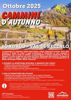 Per informazioni e iscrizioni: APT Sondalo, Via Verdi 2/A, tel. 0342 801816, mail [email protected], sito www.sondaloturismo.it.