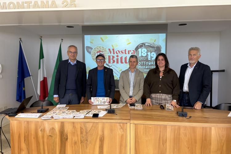 (Morbegno, 1° ottobre 2025) - È la più longeva, la più rappresentativa, la più apprezzata e la più imitata: sono tanti i primati della Mostra del Bitto, a cominciare dall'età, con i suoi 118 anni compiuti. L'appuntamento è per sabato 18 e domenica 19 ottobre, a Morbegno, con un'edizione che mantiene inalterati i suoi canoni più classici ma che riuscirà comunque a sorprendere con un ventaglio di proposte, con il Bitto al centro, che valorizzano e promuovono le eccellenze enogastronomiche e la tradizione alpina. Con le degustazioni, i laboratori didattici, i mercatini del gusto, la fattoria degli animali, la rievocazione degli antichi mestieri, la musica, gli spettacoli e il buon cibo, la rassegna morbegnese rappresenta un richiamo per i visitatori, soprattutto per chi proviene da fuori provincia, la stragrande maggioranza. Uno spaccato del mondo agricolo che vede i produttori protagonisti, a cominciare dai casari che, dopo aver trascorso una lunga estate in alpeggio, sottopongono al giudizio di esperti assaggiatori le forme prodotte. L'edizione 2025 è stata presentata questa mattina, a Morbegno, nella Sala assemblee della Comunità Montana, dai rappresentanti di enti pubblici, associazioni e operatori privati a diverso titolo coinvolti nell'organizzazione e che sostengono la Mostra del Bitto. Dal sindaco di Morbegno Patrizio Del Nero al presidente della Comunità Montana Valtellina di Morbegno Maurizio Papini, dal presidente del Consorzio di Tutela dei Formaggi Valtellina Casera e Bitto Marco Deghi al segretario generale della Camera di Commercio Marco Bonat, dalla presidente del Consorzio Turistico Porte di Valtellina Viola Vanini ai presidenti delle associazioni mandamentali di Morbegno di Confartigianato Imprese, Johnny Oregioni, e Unione Commercianti, Yuri Dolzadelli, e al direttore di Coldiretti Sondrio, Giancarlo Virgilio, con Umberto Colli, responsabile Direzione Regionale Lombardia Nord Crédit Agricole Italia, e Simona Nava, ideatore e coordinatore dell'evento. Un gruppo folto a rappresentare la coralità e la coesione che sostengono l'organizzazione, articolata e complessa, di un evento che richiama ogni anno migliaia e migliaia di visitatori. Gli interventi hanno evidenziato l'importanza trasversale della Mostra del Bitto, partendo dal settore lattiero-caseario e agroalimentare per arrivare al turismo, fino a coinvolgere artigianato e commercio. Una vetrina del territorio e delle sue eccellenze.