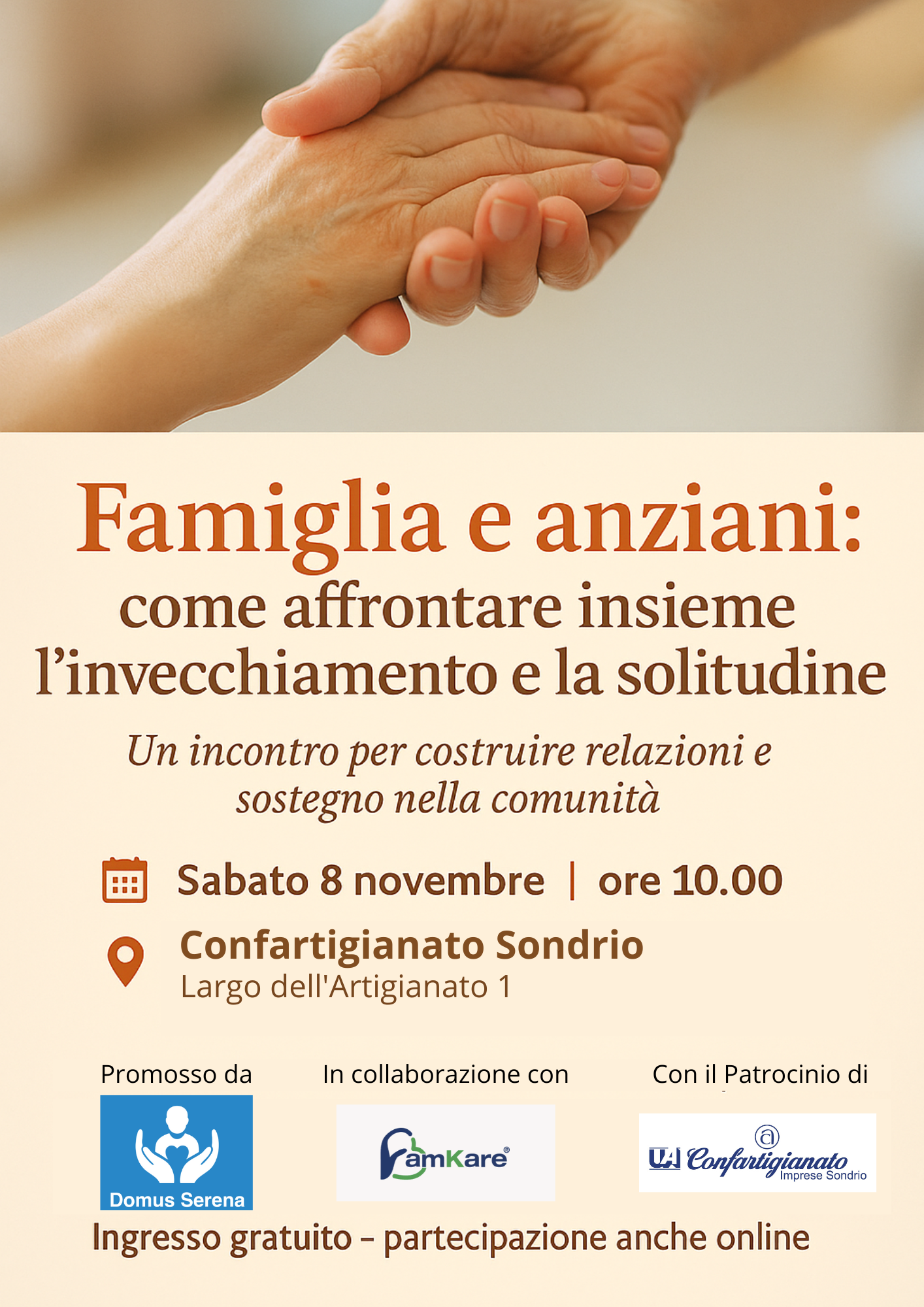 L’iniziativa è promossa da Domus Serena in collaborazione con FamKare ed è ospitata e patrocinata da Confartigianato Imprese Sondrio.