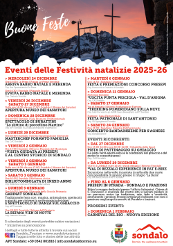 Il programma completo delle iniziative è disponibile nella locandina ufficiale e sul sito www.sondaloturismo.it. Tutti gli eventi sono inoltre consultabili sulle pagine social dell’APT Sondalo: @sondalo_tourism.
