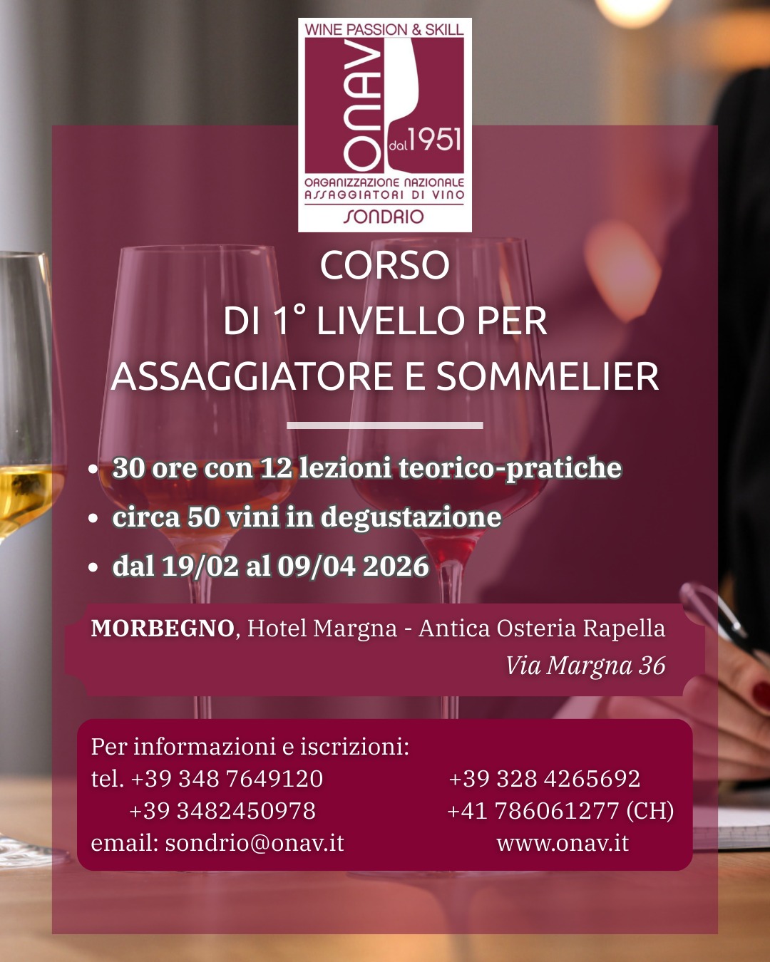 ONAV SONDRIO PROPONE ANCHE NEL 2026 UN CORSO PER “ASSAGGIATORE E SOMMELIER DI I LIVELLO”