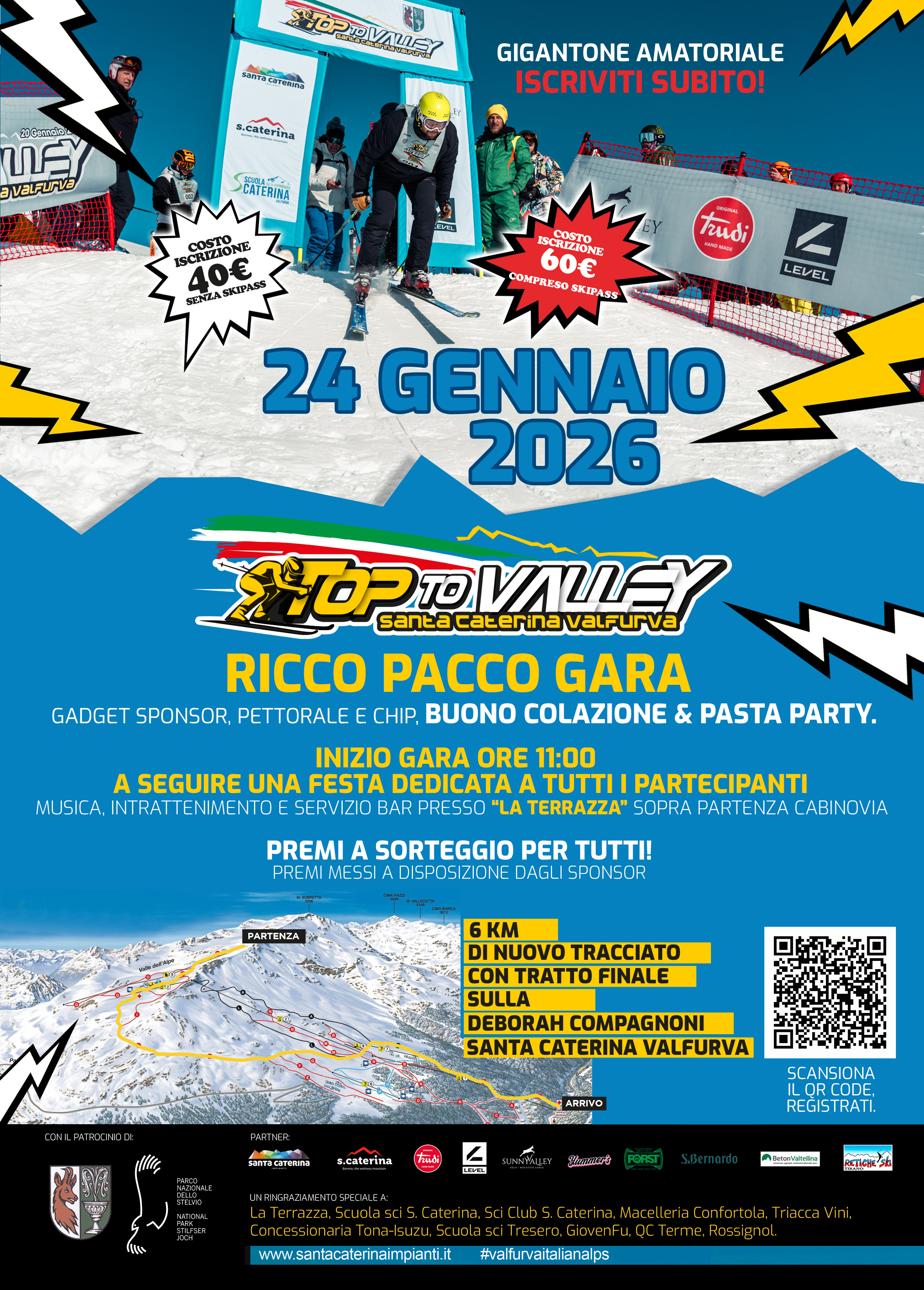 Iscrizioni on line sul sito della società impianti alla pagina dedicata TOP TO VALLEY fino al giorno