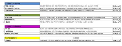 ma tutte le 44 squadre partecipanti hanno dato il meglio di loro sul percorso; una menzione particolare va alle 6 squadre dello Sci Club Sondalo che in una lunga cordata che ha legato tutti insieme i 24 componenti hanno voluto ricordare a loro modo il loro amico Alberto De Maron, giovane atleta dello sci club, recentemente scomparso, purtroppo per l’ennesimo incidente in montagna.