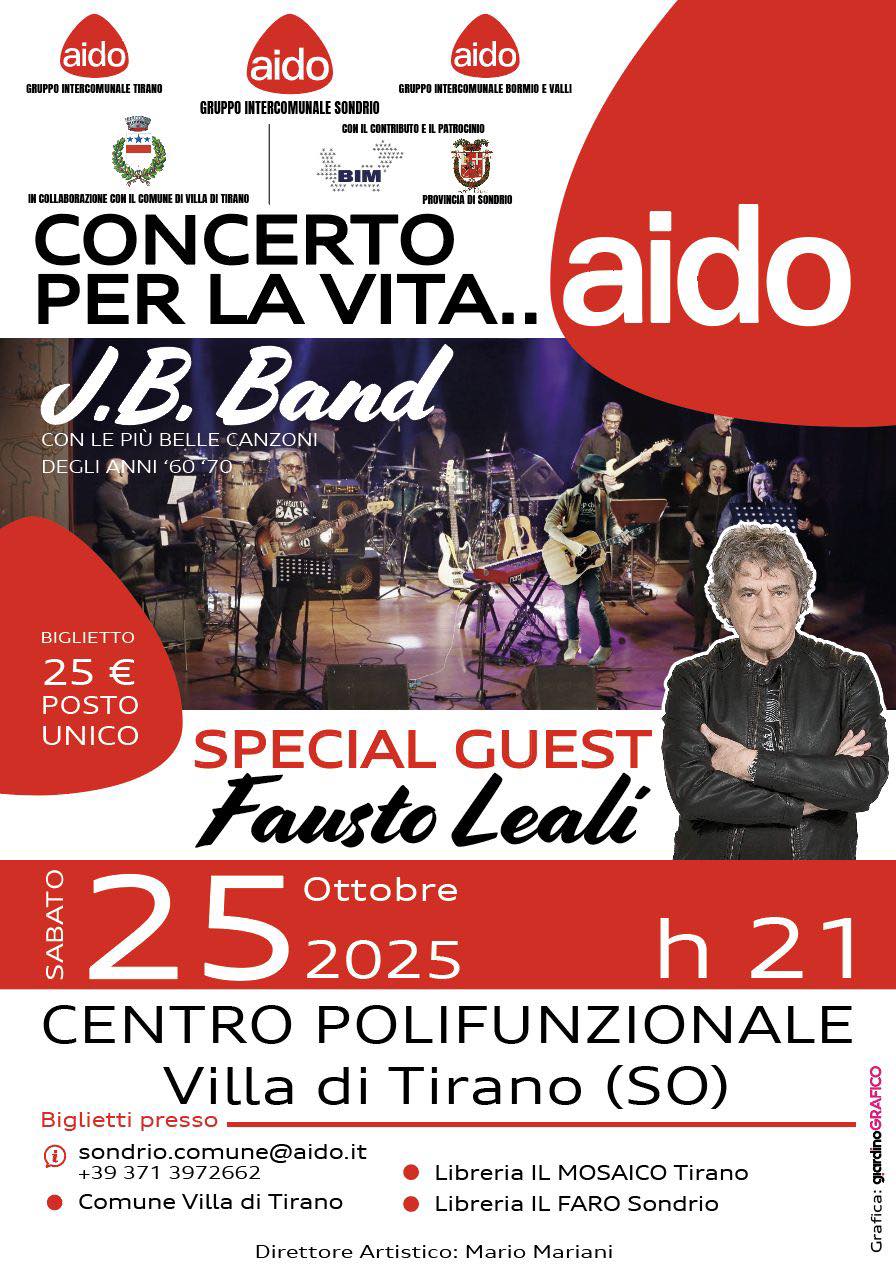 Si è svolta martedì nella Sala Consiliare del Comune di Villa di Tirano la conferenza stampa di presentazione del Concerto per la Vita AIDO 2025, l’appuntamento musicale e solidale che vedrà protagonista Fausto Leali, special guest della serata insieme alla J.B. Band, che proporrà le più belle canzoni degli anni ’70 e ’80.