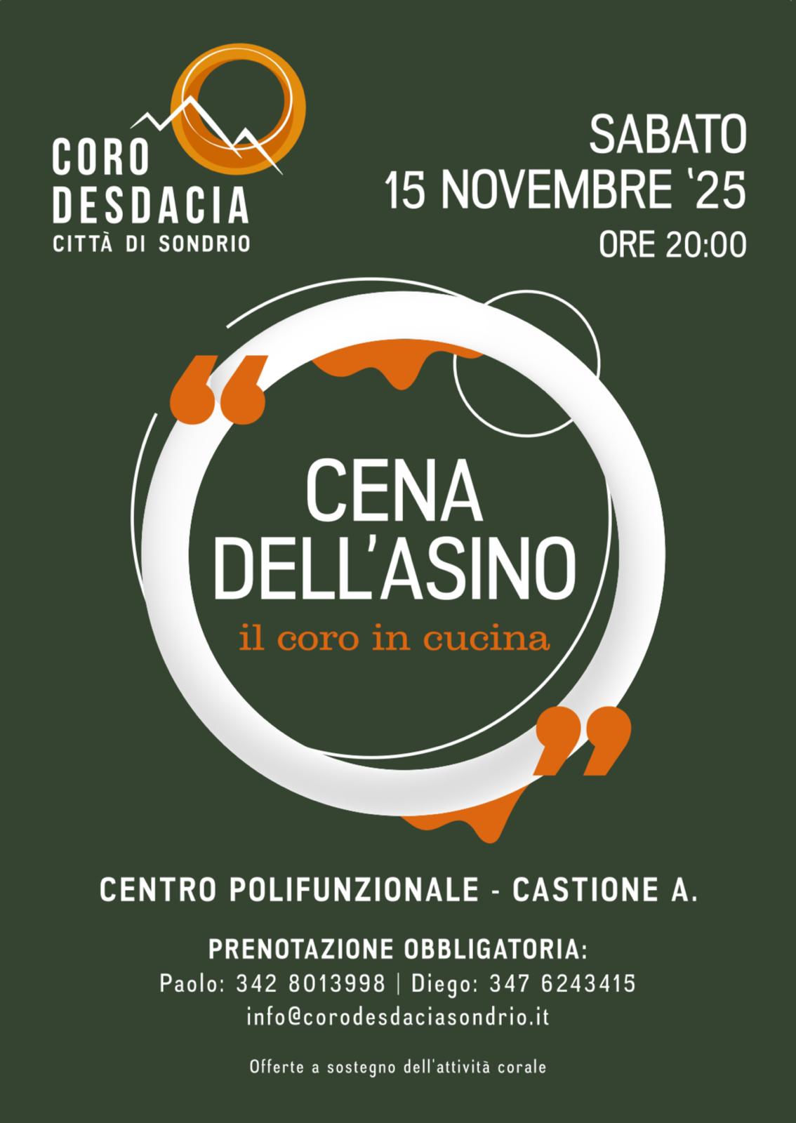 cena è prevista per sabato 15 novembre alle ore 20.00 al polifunzionale di Castione