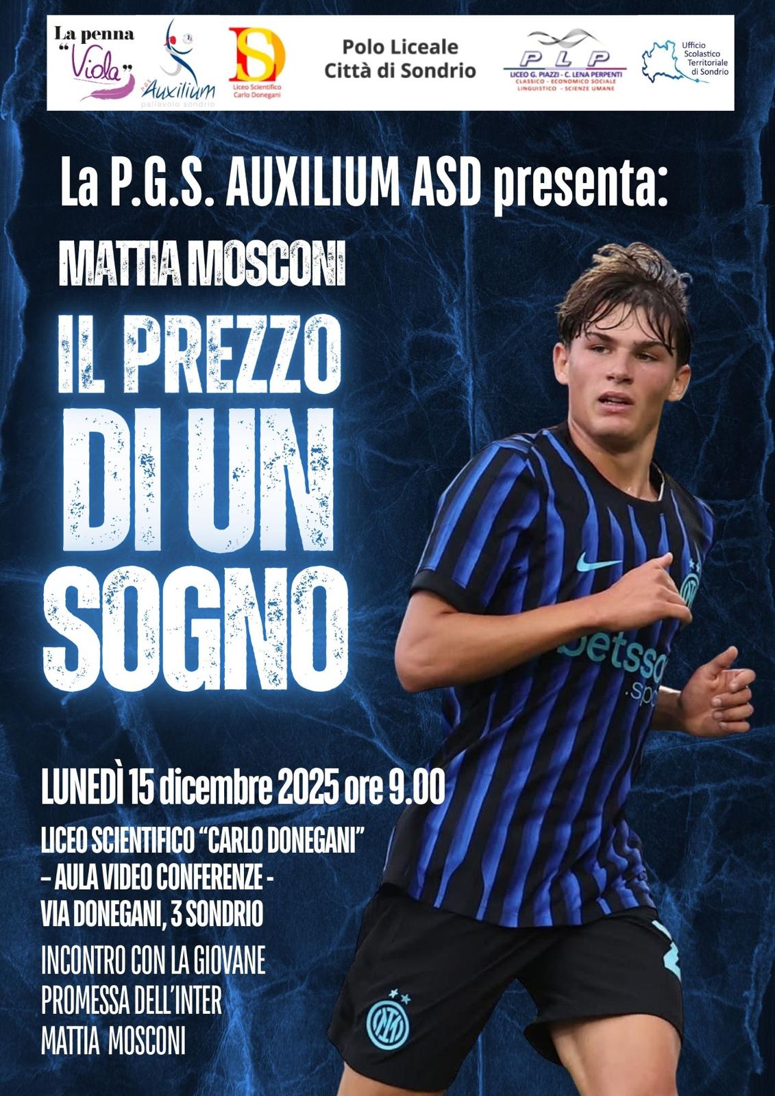 La quarta edizione del Premio “La penna Viola” avrà un interessante prologo: lunedì 15 dicembre 2025 (dalle 9) nella palestra del Liceo Scientifico “Donegani” di Sondrio, la grande promessa del calcio italiano Mattia Mosconi incontrerà gli studenti di tutte le classi ad indirizzo sportivo: il giovane attaccante di Grosio, titolare della Primavera dell’Inter, si racconterà nel faccia a faccia dal titolo “Il prezzo di un sogno” mettendo in evidenza i sacrifici compiuti per entrare nel mondo nerazzurro. Nel suo palmares, un campionato Europeo con la nazionale azzurra Under 17, un campionato Primavera e la Supercoppa italiana. A moderare l’incontro, il giornalista Paolo Ghilotti (La Provincia Unica Tv) biografo ufficiale di Mattia di cui segue la carriera sin dai primi passi.