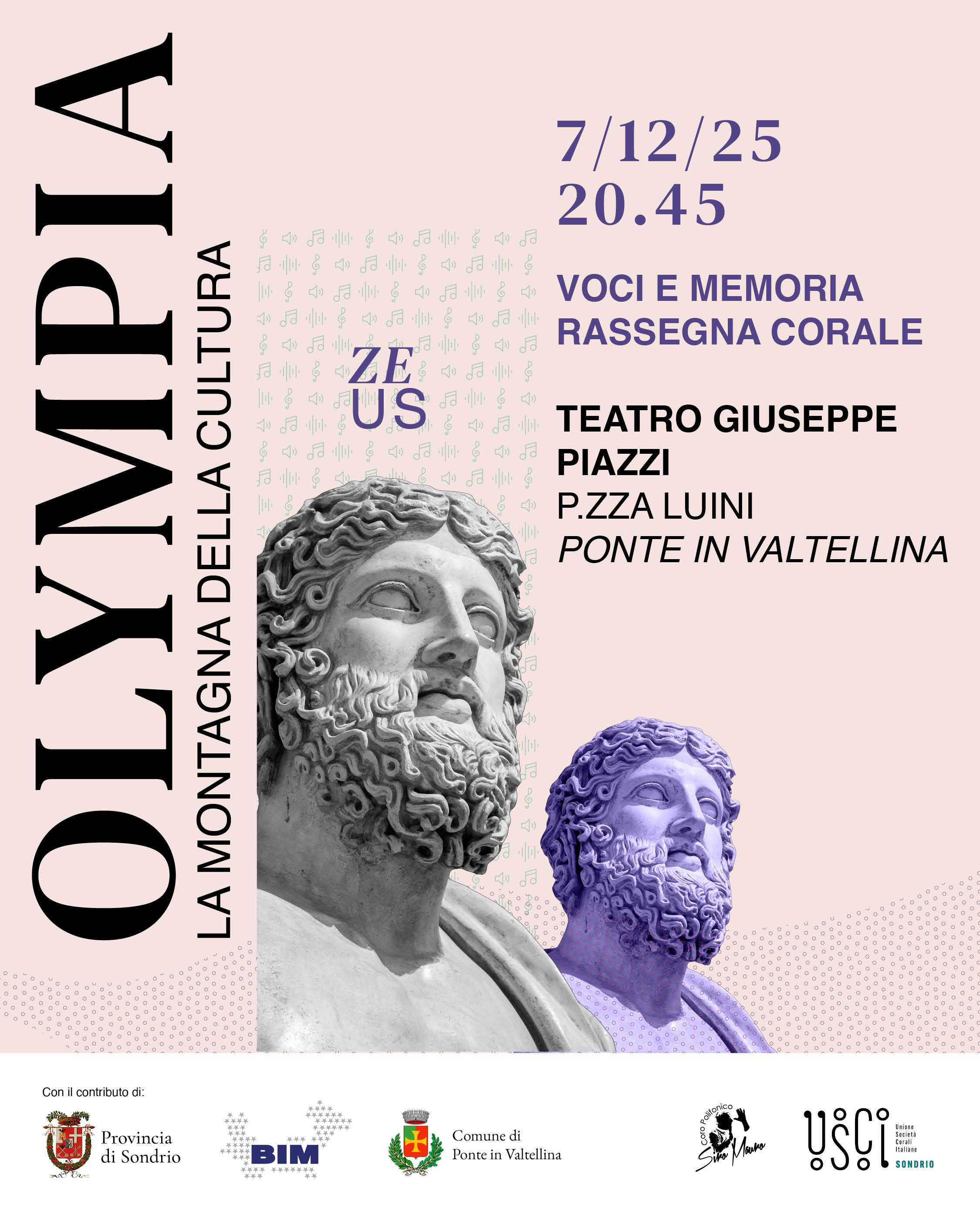 PONTE IN VALTELLINA (SO) – Domenica 7 dicembre 2025, alle ore 20:45, presso il Teatro Giuseppe Piazzi di Ponte in Valtellina, si terrà la VII edizione della rassegna corale "Voci e Memoria", l'evento ideato dal Coro Polifonico Siro Mauro, diretto dal M° Massimiliano Moltoni, per onorare l’indimenticato Maestro Siro Mauro, figura cardine e simbolo del canto corale in provincia di Sondrio. Questa VII edizione, inserita nel più ampio progetto musicale e culturale "Olympia, la Montagna della Cultura", sostenuto dalla Provincia di Sondrio, si ispira al mito di ZEUS, capo degli Dei e padre delle Nove Muse. La scelta riflette il ruolo di Siro Mauro quale figura generatrice di passione e conoscenza musicale, un’eredità considerata un dono prezioso, come la musica era ritenuta un dono delle Muse nell'antica Grecia. Ospite d'Eccezione: Il Coro Gamut di Pescara Il palco del Teatro Piazzi vedrà la partecipazione di una delle migliori formazioni corali d'Italia: il Coro Gamut di Pescara, diretto dal M° Serena Marino. Il Gamut, complesso vocale nato nel 2018, vanta prestigiosi riconoscimenti, tra cui il 2° premio al Concorso Nazionale Polifonico Guido d’Arezzo 2019, ed è noto per la sua versatilità e per l'elevata professionalità nell'esecuzione di un repertorio che spazia dal medievale al contemporaneo. La presenza del Gamut garantisce un evento di altissima qualità artistica. "Voci e Memoria" non è solo un concerto, ma l'evento conclusivo di "Polifonie nell’Arte in Valtellina", un progetto con il duplice obiettivo di far conoscere l'immenso patrimonio della musica corale e di valorizzare i "Luoghi di Storia e di Cultura" della Valtellina (chiese, palazzi, chiostri e teatri) per le loro qualità monumentali, artistiche e acustiche.
