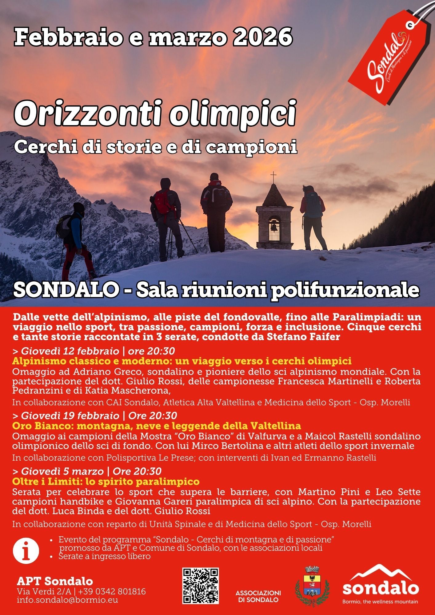 Dalle vette dell’alpinismo alle piste del fondovalle, fino alle Paralimpiadi: “Orizzonti Olimpici. Cerchi di storie e di campioni” è un viaggio nello sport che mette al centro passione, talento e inclusione. Un racconto fatto di imprese, volti e campioni che hanno segnato la storia sportiva del territorio e che continuano a ispirare nuove generazioni. Cinque cerchi, tante storie e tre serate di incontri, condotte da Stefano Faifer, in programma presso la Sala riunioni della Cittadella dello Sport di Sondalo. Ogni appuntamento, a ingresso libero, è dedicato a una diversa dimensione dello sport, tra memoria, eccellenza e futuro.